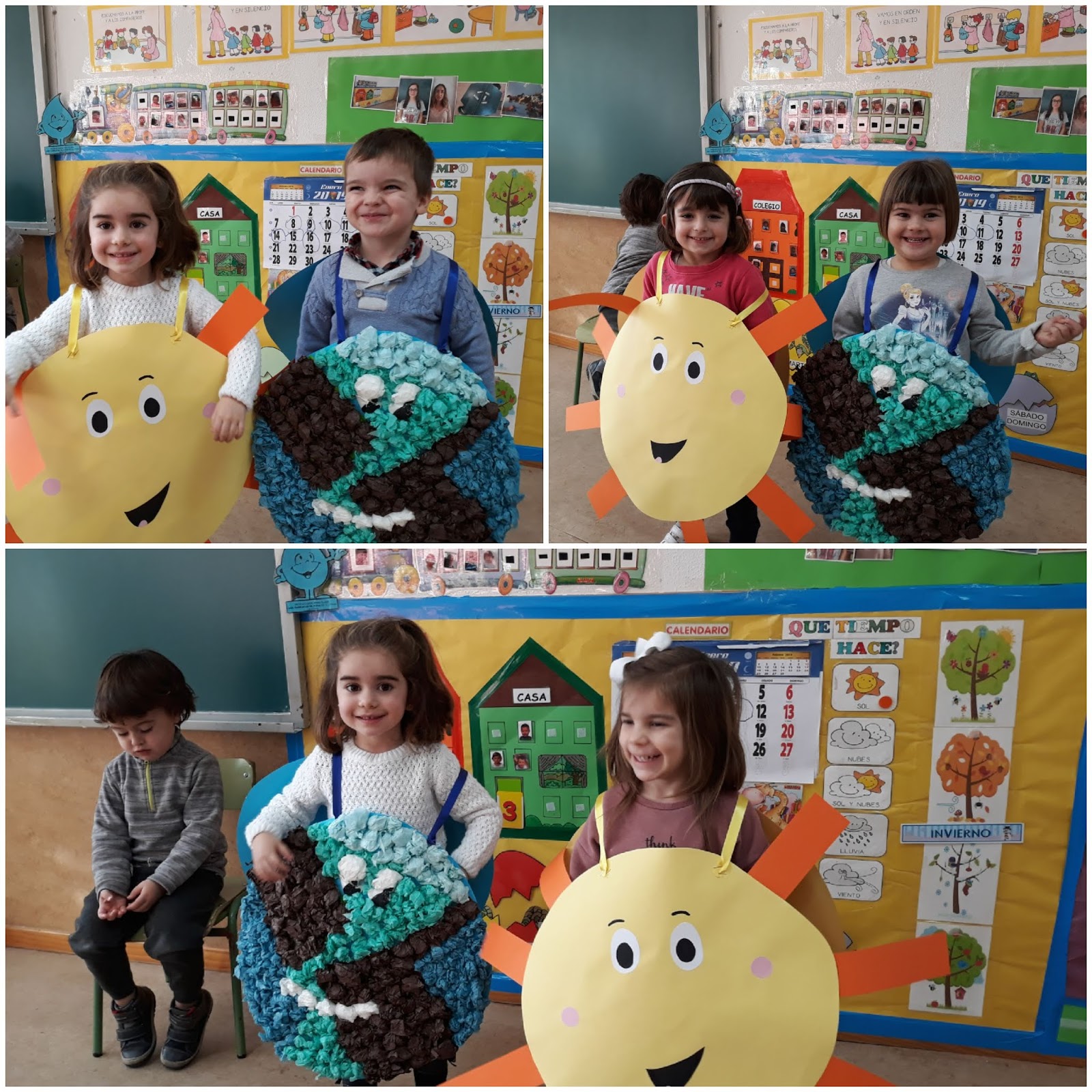 Hoy es el último día de Carla haciendo las prácticas en el cole y ha preparado una actividad muy chula en la que hemos conocido el espacio. Hemos aprendido que vivimos en la Tierra y que esta da vueltas alrededor del sol. ¡Nos lo hemos pasado genial!