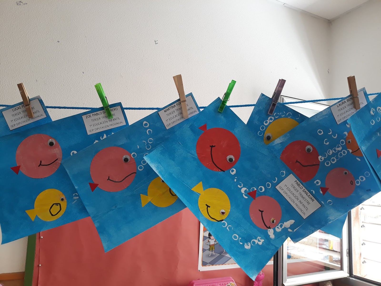 Ayer estuvo Charo en clase, la mamá de Zeus e Indira. Nos estuvo ayudando a hacer un girasol muy chulo. Hicimos las pipas con huellas de los dedos, y los pétalos del girasol los hicimos con tenedor. ¡Fue muy divertido utilizar un utensilio de cocina para pintar! También nos ayudó a terminar las portadas del Tercer Trimestre, que nos han quedado genial.